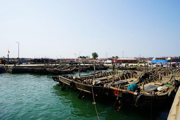 这里的村民基本上是以出海打渔为主,旅游旺季的时候才做做渔家乐,所以村子更加淳朴自然,这也是任家台的一个特点。现在的任家台渔港经过改建,已经发生了翻天覆地的变化,以前这里只是一个小渔港,只有一个码头,现在扩建了停车广场,整洁而又气派,码头也变成了整齐的一排,停靠着各种船只。这里只有几艘出海打渔的大游船,其他都是渔民打渔的木头渔船,整整齐齐排列在渔港,也是一道独特的风景。