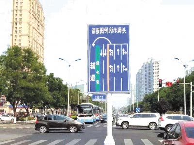 5月30日,记者在海曲路兖州路路口看到,两块新的道路行驶提醒标志牌已安装到位,分别规定了机动车在该路口自西向东行驶时掉头和右转的“新走法”,而大部分行经此处的车辆已开始按照新规定行驶。 提醒标志显示:即日起,海曲路大润发路口自西向东如需掉头,允许进入海曲路北侧辅道行驶;同时,允许行经该路口自西向东行驶的右转车辆,可提前驶入海曲路南侧辅道。 “经过前期对海曲路兖州路路口交通状况的系列调研,实行新的通行方式将有效缓解该路口的通行压力。”日照市公安局交通警察支队直属大队民警表示。
