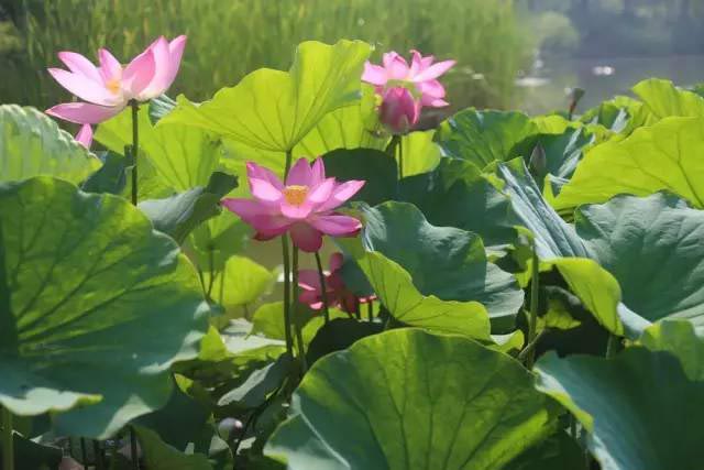 满池塘的荷花,荷花仙子在池边走过,周围绿树如荫、曲径通幽,每年六月开始,荷花陆续开放,清风徐徐,给游客送来了缕缕清香。