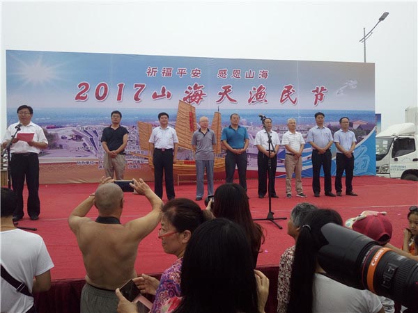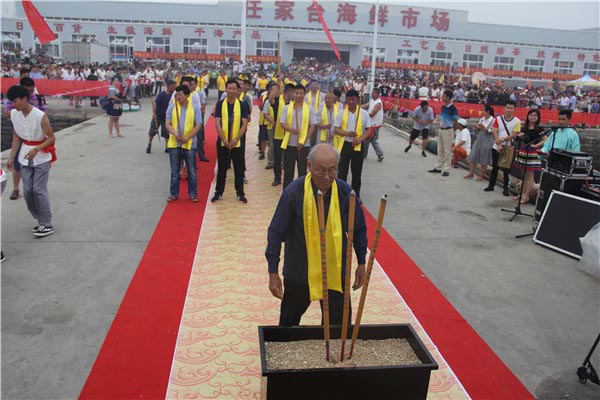 7月6日上午,“祈福平安·感恩山海”2017首届山海天渔民节在任家台渔港举行,百余名渔民现场祭拜大海和龙王,祈求人福舟安、鱼满丰仓。