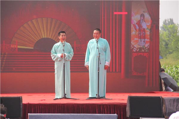 在天台山脚下,伴随着喧天锣鼓声,杨留星、王均波、赵东江、王华共同启动了太阳文化节开幕球,光球闪动,标志着太阳文化节正式开幕。
