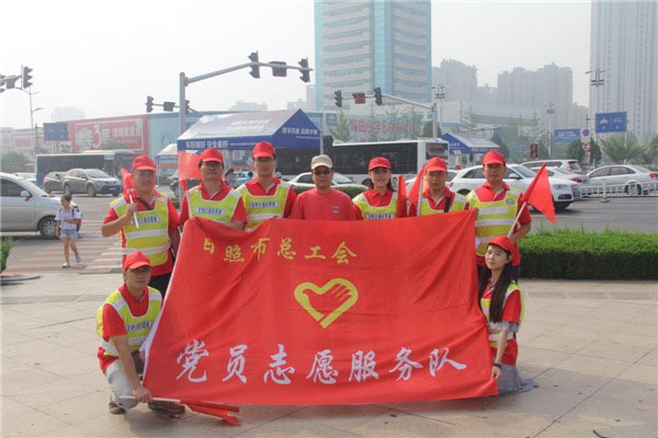 7月19日,市总工会党员志愿服务队在纪检组长冯家华同志的带领下,在市区烟台路与泰安路交汇路口开展“礼让斑马线,我为你点赞”文明劝导志愿服务活动。