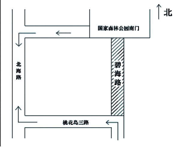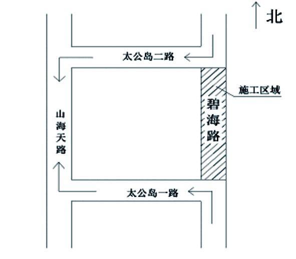 碧海路(太公岛一路至太公岛二路,国家森林公园南门至桃花岛三路)路面维修工程,因路面局部破损严重,需铣刨后重新摊捕沥青面层,我单位对此两路段进行全幅封闭施工,封闭路段如图所示,请过往车辆根据示意图选择适合路段绕行。 封路日期:2017年8月21日至2017年9月15日。 请过往车辆和行人减速慢行,注意交通安全! 特此公告 日照山海天旅游度假区建设局 日照山海天旅游度假区交警大队 2017年8月17日 施工路线图及绕行图说明:阴影部分为封闭路段。