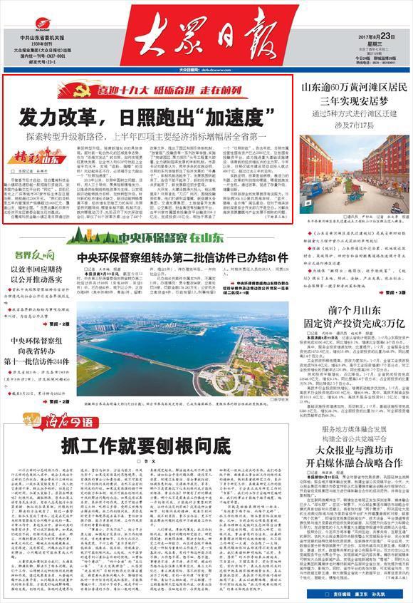 以改革促转型、培育新增长点的实践,成为日照加快发展、实现动能切换的路径选择。从去年开始,日照经济开始冲出低谷、迎来拐点,主要经济指标增速均居全省前列。今年继续保持这种好势头,上半年地区生产总值增长9.8%,规模以上工业增加值增长11.8%,一般公共预算收入增长12%,出口增长44.3%,四项经济指标增幅均居全省第一位。