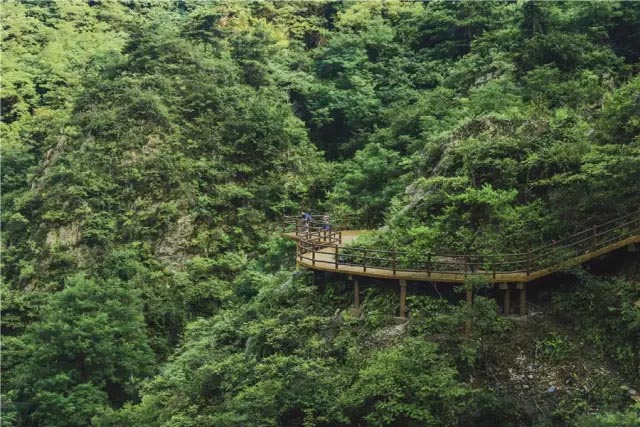 五莲山透着人文的气息,而九仙山则更显大自然的狂野与细腻。似乎,游客们更多期待深秋,那是落叶缤纷,红枫树被风吹落,满山遍野的色彩,总是说不出的浪漫。在情侣峰上,目光跨过鹊桥,远处的树木也渐渐自成一色。
