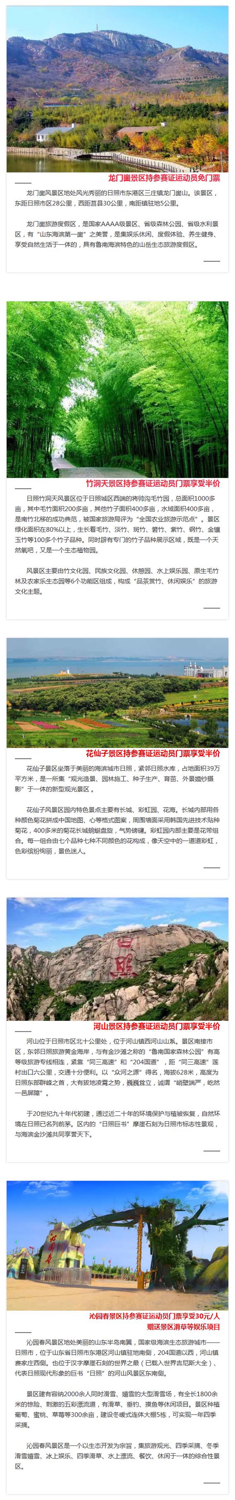 你是参加本次2017日照国际马拉松的运动员吗? 参赛之余,想顺便给自己来次小旅行吗? 日照有很多景区打算去看看吗? 持参赛证运动员,去这些景区游玩享优惠!