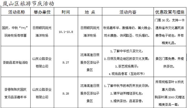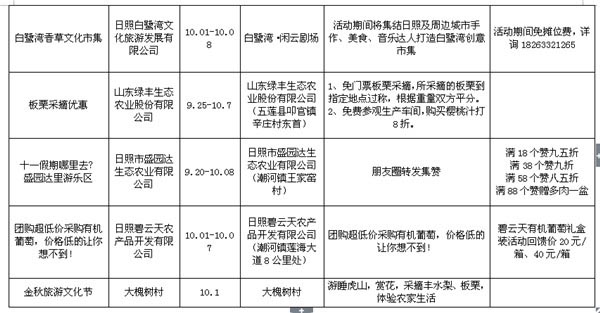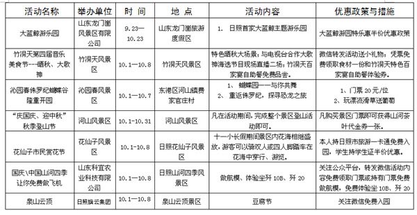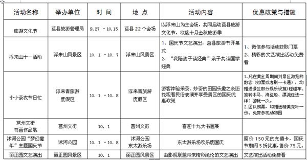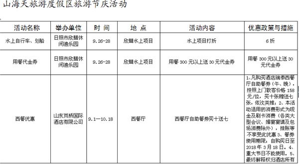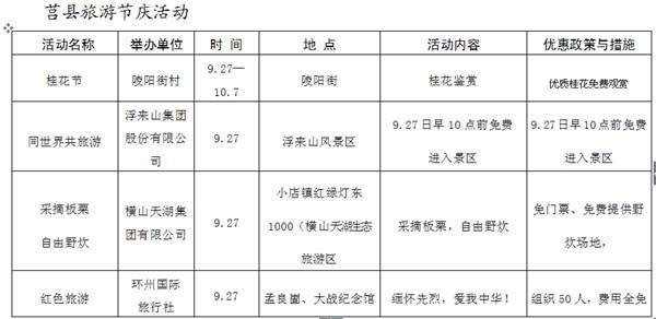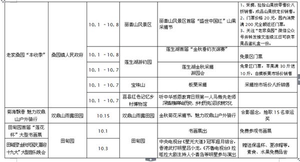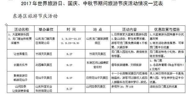 2017年世界旅游日、国庆、中秋节期间旅游节庆活动情况一览表(2017年09月25日)