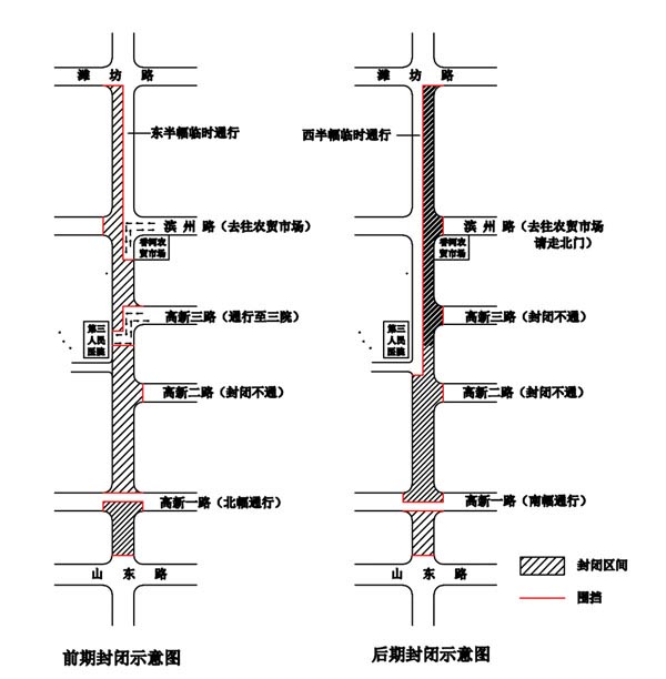 因工程建设需要,需对昭阳路(山东路—潍坊路段)进行全封闭施工,封闭时间从2017年9月25日—2017年12月30日。请过往车辆、行人提前绕行,注意安全。前期封闭期间高新一路东西方向北幅通行,去往第三人民医院的车辆行人请绕行高新三路,滨洲路路口西侧封闭;后期封闭期间适时将潍坊路至高新二路西半幅临时通行,东半幅封闭施工。封闭区域施工期间留有施工车辆进出口,社会车辆行人请勿入内。 日照市公安局交通警察支队 日照高新区建设局 日照高投市政工程有限公司 二零一七年九月二十三日