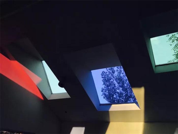 镜子中的镜子,当镜子遇到彩色的玻璃,和老院子的对比,便是彼此相融,在新生的房子上,一直映着老房子的影子,这种对话似是无声胜有声了。