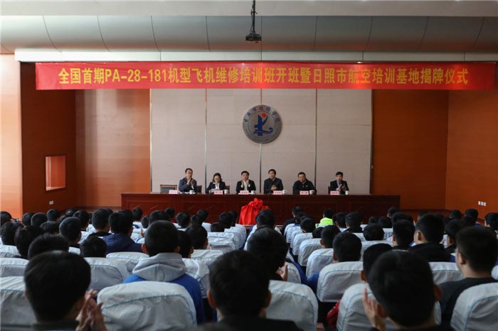 日照市航空培训基地设在日照市技师学院,该基地将与航空产业公司深入开展校企合作,积极承担培养飞机维修、飞机驾驶、空中乘务、地面服务、航空安全员等航空产业人才的培训业务。本次开班的PA-28射手机型维修培训由日照市技师学院和低空快线(日照)飞机公司合办,该培训项目属国内首次引进,并已通过中国民航局审批备案。该培训项目师资由美国Piper飞机公司指定的美国培训教员组成,培训内容为机械二类和航电二类。首批受训的16名学员来自全国的生产企业及其他相关航空维修单位人员,培训结束经过考试合格将颁发民航局批准的机型培训合格证,学员由低空快线(日照)飞机有限公司负责安排就业。