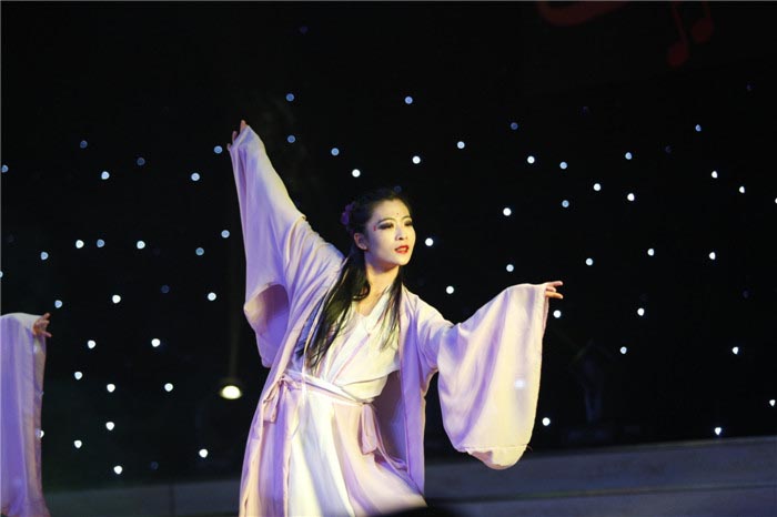 当晚,体育场内座无虚席。晚会在动感开场舞中拉开帷幕,学生们表演的乐器演奏《小宝贝》、歌曲串烧《作曲家》,老师表演的古典舞《半壶纱》等节目赢得观众的阵阵掌声和喝彩声。同时,学院还邀请到了山东外国语职业学院“山海路99号乐队”、山东水利职业学院“自由落体乐队”等校园乐队登台演出,场面热闹非凡。