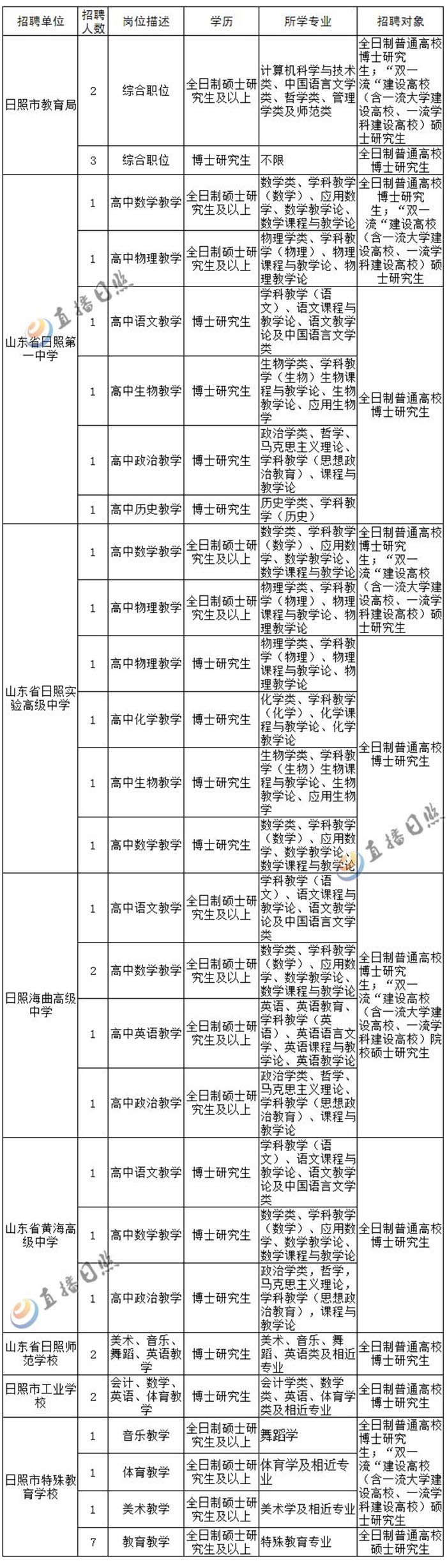 具体招聘单位、招聘岗位、招聘人数详见《日照市教育局直属事业单位2018年招聘高层次人才岗位汇总表》