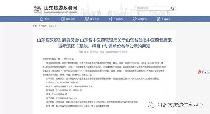 重磅!日照这些单位入选山东省首批中医药健康旅游示范区(基地、项目)(2018年01月18日)