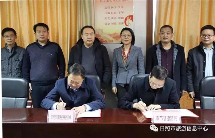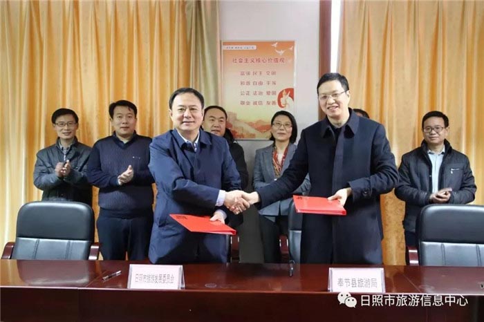 为加强日照市和重庆市奉节县交流合作,充分发挥两地旅游资源优势,搭建“山与海”旅游合作新平台,1月17日,市旅游发展委员会与奉节县旅游局在日照市签订《日照市旅游发展委员会和奉节县旅游局友好合作协议》,两地旅游部门缔结为友好合作单位,结成战略合作伙伴关系,推动实现信息共享、品牌共创、市场共拓、线路共建。市旅游发展委员会主任王均波、奉节县旅游局局长邹远江出席签字仪式。