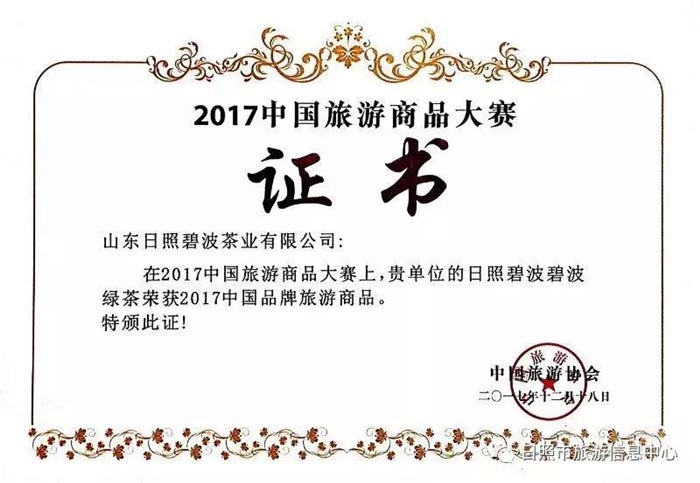1月16日,山东省旅游商品品牌培训暨“2017中国品牌旅游商品”颁奖仪式在济南举行,我市“城市品读-0633”农民画绣、“碧波”绿茶荣获“2017中国品牌旅游商品”大奖。