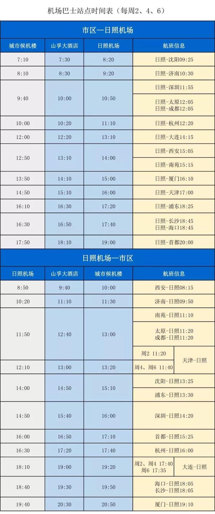 目前,从日照机场可到达的城市航线有:北京(南苑、首都)、上海(浦东)、大连、哈尔滨、广州、厦门、深圳、西安、天津、沈阳、成都、太原、海口、长沙、济南、杭州。其中,上海(浦东)-日照-大连航线由东方航空公司执飞,哈尔滨-日照-广州航线由南方航空公司执飞,北京(首都)-日照-厦门航线由山东航空公司执飞。其他航线的航空公司可咨询日照机场,电话:0633-7999996