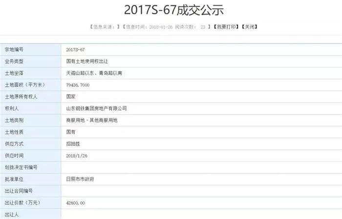 山钢4.26亿竞得山海天旅游度假区一块地!(2018年01月27日)