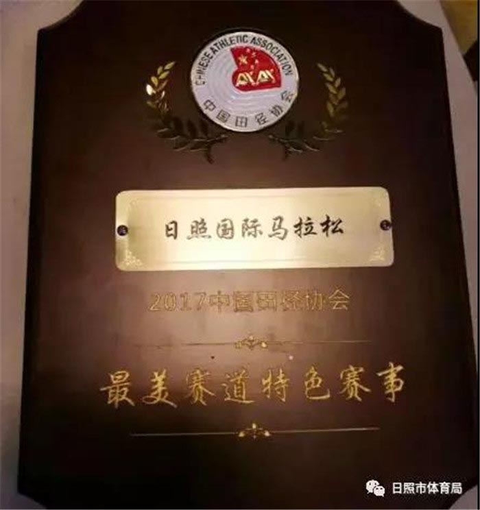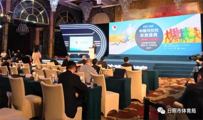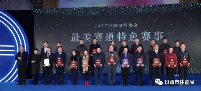 1月25日,以“马拉松-跑进健身新时代,踏上健康新征程”为主题的2017特步·中国马拉松年度盛典在上海举行。日照国际马拉松喜获两项殊荣——最美赛道特色赛事奖和银牌赛事奖。副市长林彦芹、市体育局局长孟凡香出席典礼并登台领奖。来自中国田径协会认证赛事的700余名赛事代表和部分城市代表,各省区市体育局、田管中心领导参加盛典。