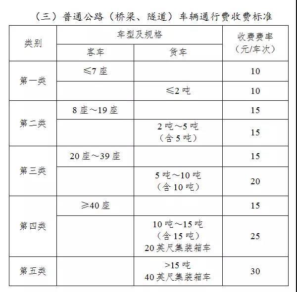 日前,山东省交通运输厅、山东省物价局、山东省财政厅发布《关于规范收费公路车辆通行费有关事项的通知》,自2018年1月1日起,我省境内收费公路车辆通行费将实行按车型收费和计重收费两种收取方式。已安装计重设备的收费公路,对货车计重收取车辆通行费,对客车按车型收取车辆通行费;未安装计重设备的收费公路,对所有过往车辆按车型收取车辆通行费。 根据《通知》,普通市民最关心的7座(含7座)以下客车,高速公路车辆通行费收费标准为0.40元/公里;高速公路特大桥(隧道)车辆通行费收费标准为15元/车次;普通公路(桥梁、隧道)车辆通行费收费标准为10元/车次。
