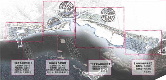 星光海岸度假带作为东方太阳城项目的重要组成部分,位于现刘家湾赶海园景区区域,占地面积5平方公里,海岸线长9公里,主要包括刘家湾休闲度假区、金沙岛星光度假区、阜鑫渔港观光区、德兴渔业观光区四个功能区和刘家湾社区(羲叔)、小海社区(羲仲)、金沙社区(嵎夷)三个小镇,重点打造提升刘家湾赶海园、金沙岛海水浴场等景点,打造集亲子休闲、滨海度假、研学旅行、渔业体验为一体的旅游休闲带。
