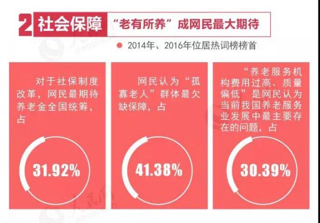 对于社保制度改革,“养老金全国统筹”成为网民最关注的焦点,“继续提高基本养老保险水平”的呼声紧随其后。同时,本次调查显示,逾四成网民认为孤寡老人最缺保障。