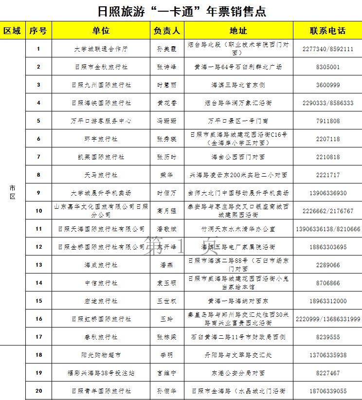 日照旅游“一卡通”景区年票加盟景区(点)共22个