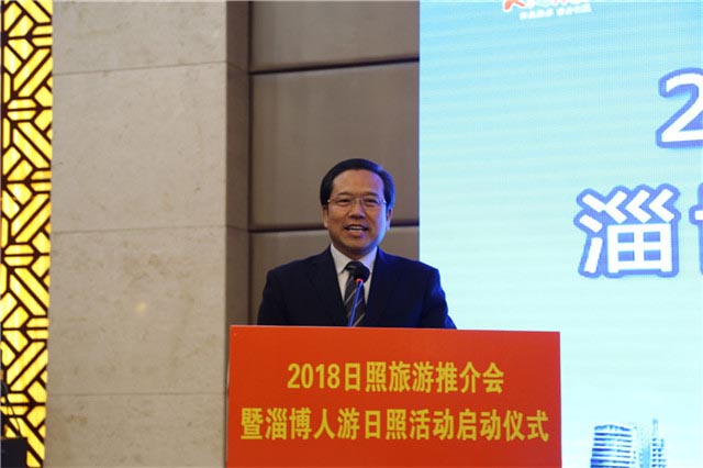 淄博市旅发委副主任荆茂彬在致辞中说,日照旅游形象宣传片做的非常好,看了就有一种想去的冲动。日照是一座特别适合休闲度假的旅游城市,阳光明媚、空气清新、海鲜肥美,跟淄博市的旅游资源有着极大的互补性。希望通过这次推介会,掀起淄博市民游日照的高潮,希望淄博市各大旅行社、新闻媒体齐心协力,把淄博的广大游客带到日照,享受日照丰富的旅游资源和旅游产品。