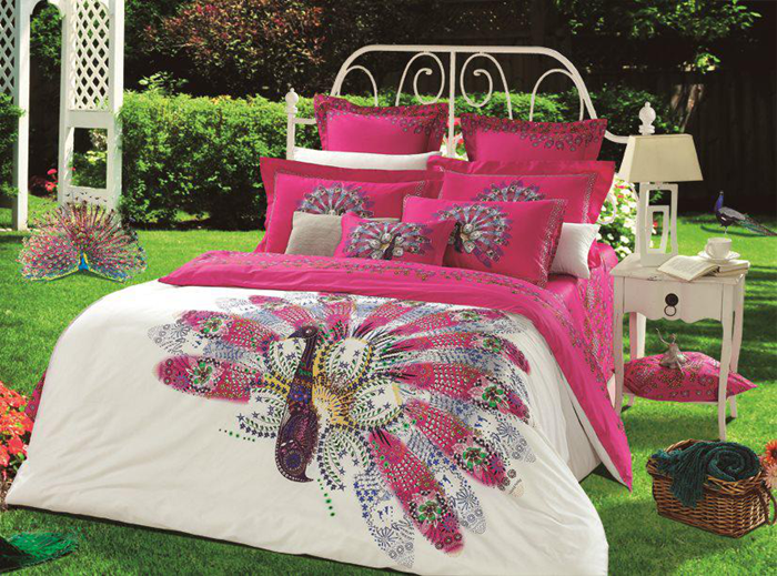 活性印花四件套采用100%高支精梳棉面料,环保活性印花,不含甲醛、偶氮等普通涂料印染中加入的有害印染材料,保障了皮肤健康。活性印花工艺使面料色彩亮丽,色牢度好,手感柔软、防尘性能优良、洁净度高,常洗不易褪色。制作工艺优良,采用欧式人性化制作,床单圆角反翘,在使用过程中避免了下垂到地等优点。