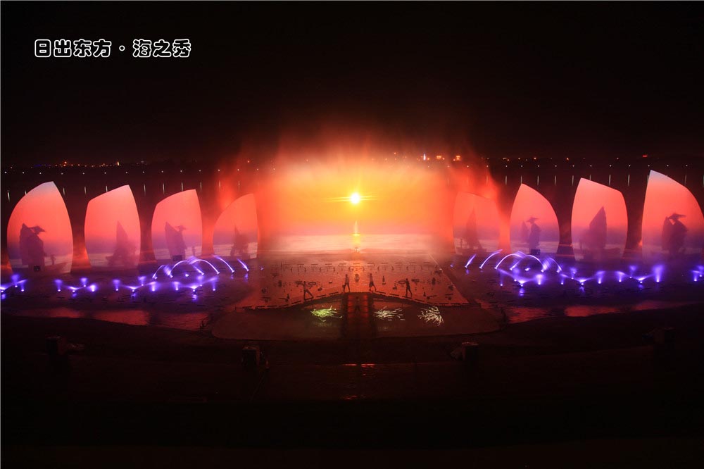 “日出东方”海之秀是由日照城投集团投资建设,法国ECA2公司设计制作的大型夜间多媒体水秀表演项目。该项目看台区所有座椅全部为木质坐凳,可以容纳2000余人同时观看演出。