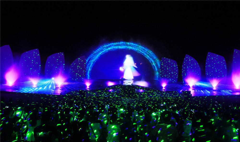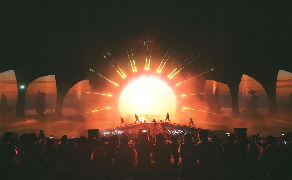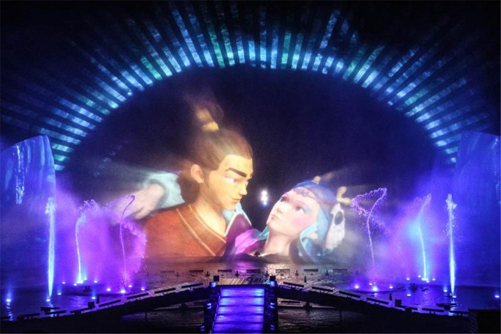 项目运用激光、音频、影像、4D动画、喷泉、水雾、烟花等多媒体创新技术手段和艺术表现形式,打造集艺术、创意、科技、文化于一体的全球顶级大型多媒体现代化水秀夜间表演节目,通过声、光、电、火、水、雾及情景表演,引导游客穿越时空隧道,身临其境地去感受强烈的视听盛宴。