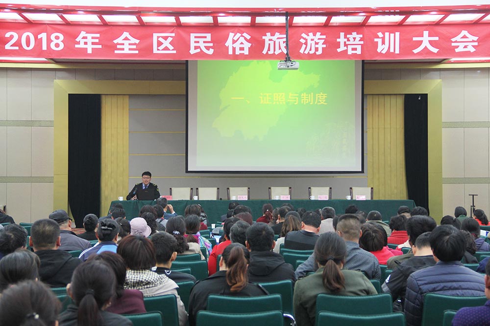 培训大会旨在进一步提高全区广大民俗旅游经营者的依法诚信经营意识,提升规避经营风险能力,提高民俗旅游服务管理规范化水平,打造诚信守法经营的旅游市场环境,以全新面貌迎接旅游旺季的到来。