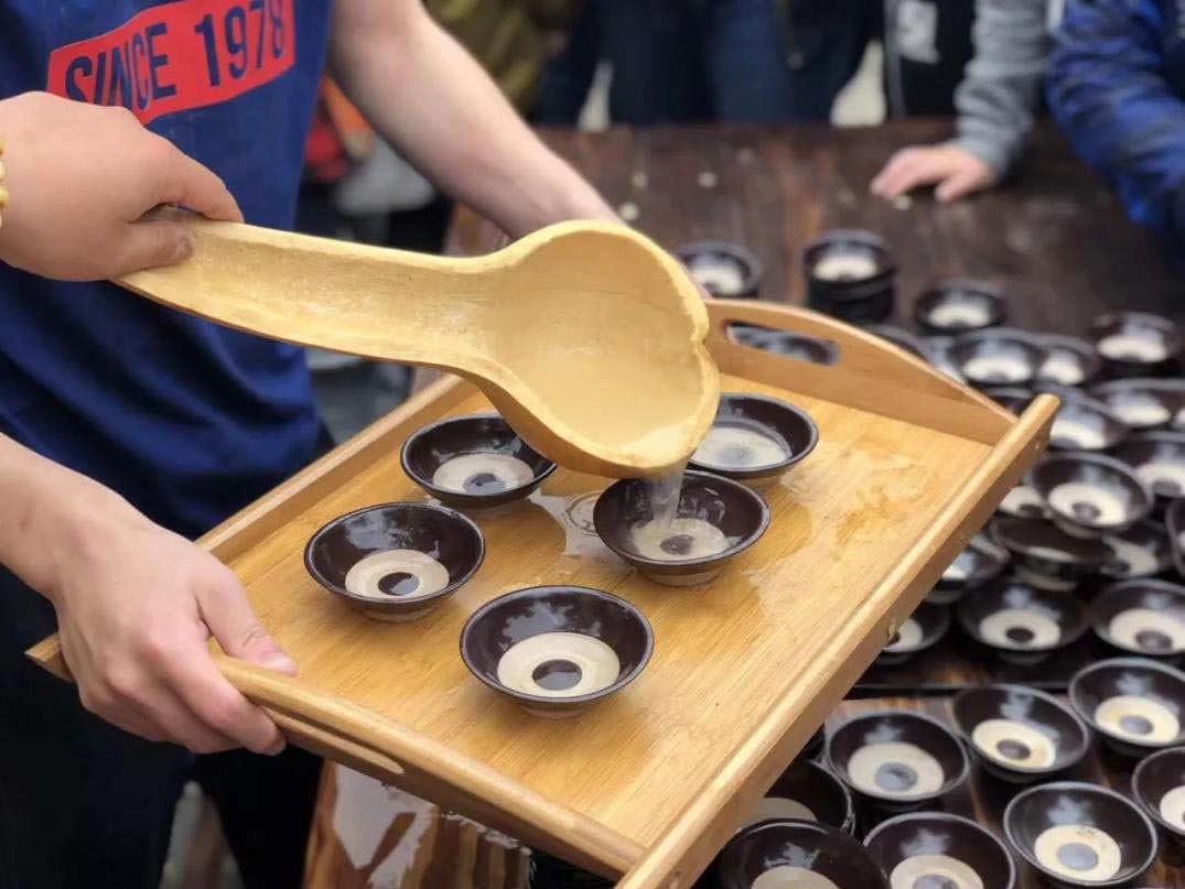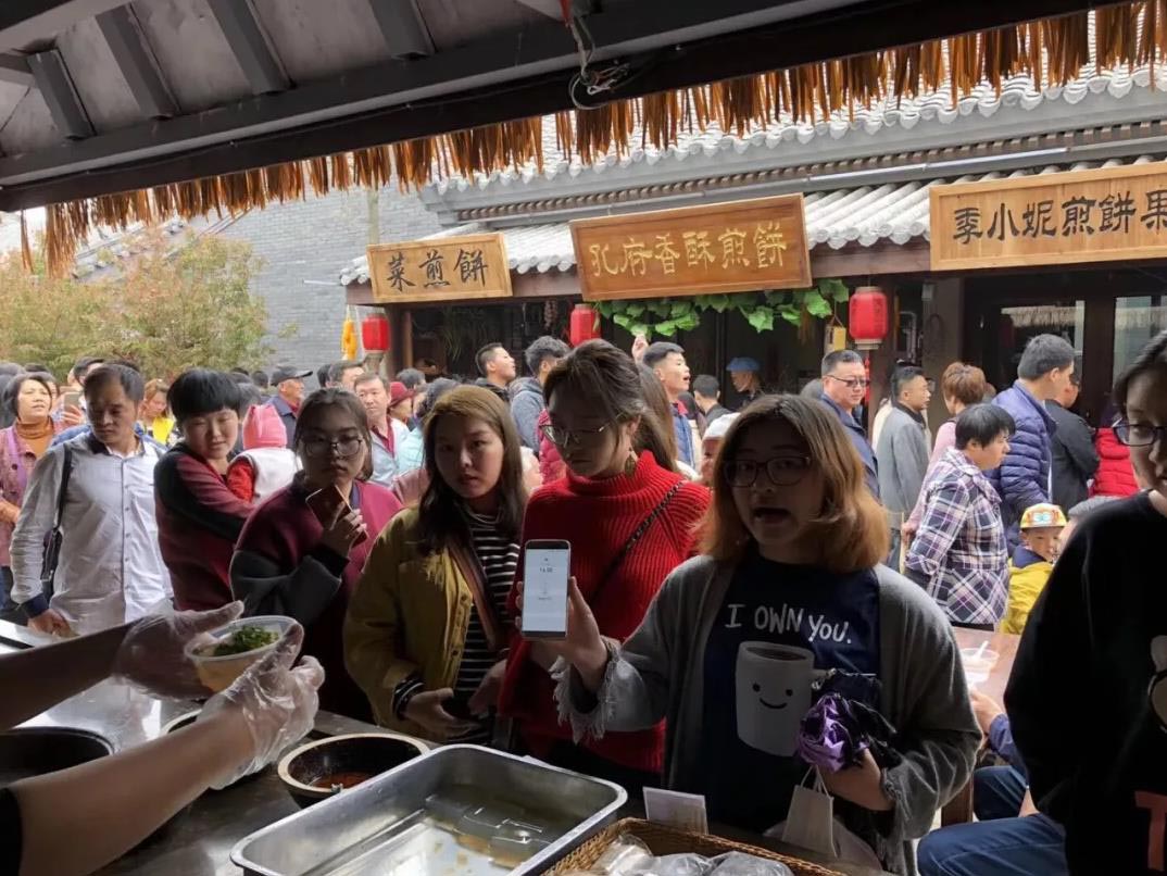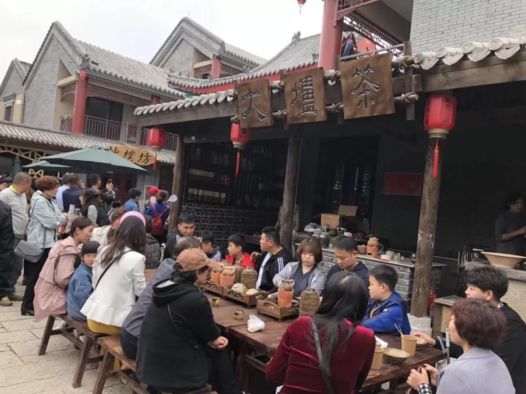 东夷小镇“五一”期间试营业, 举办幸运转盘抽奖、集美食章、寻找有缘人等活动,吸引15 万名游客参加。 人山人海 就是吃不够
