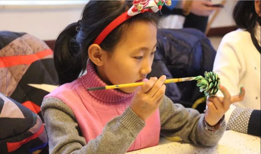 一支笔将调好的颜料给松果穿上美丽的外衣,把他作为六一儿童节的礼物送给爸爸妈妈或者是同学。