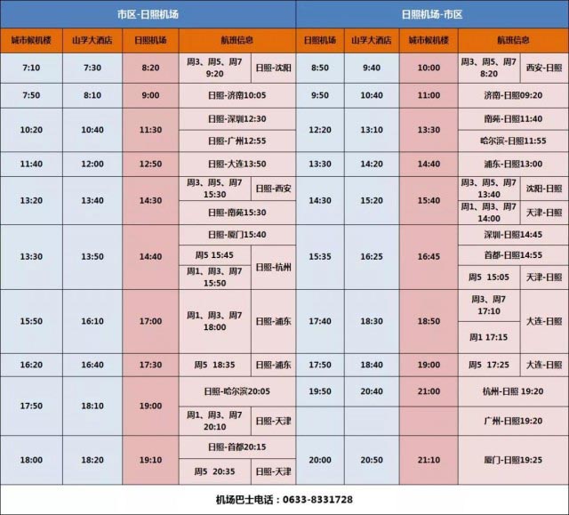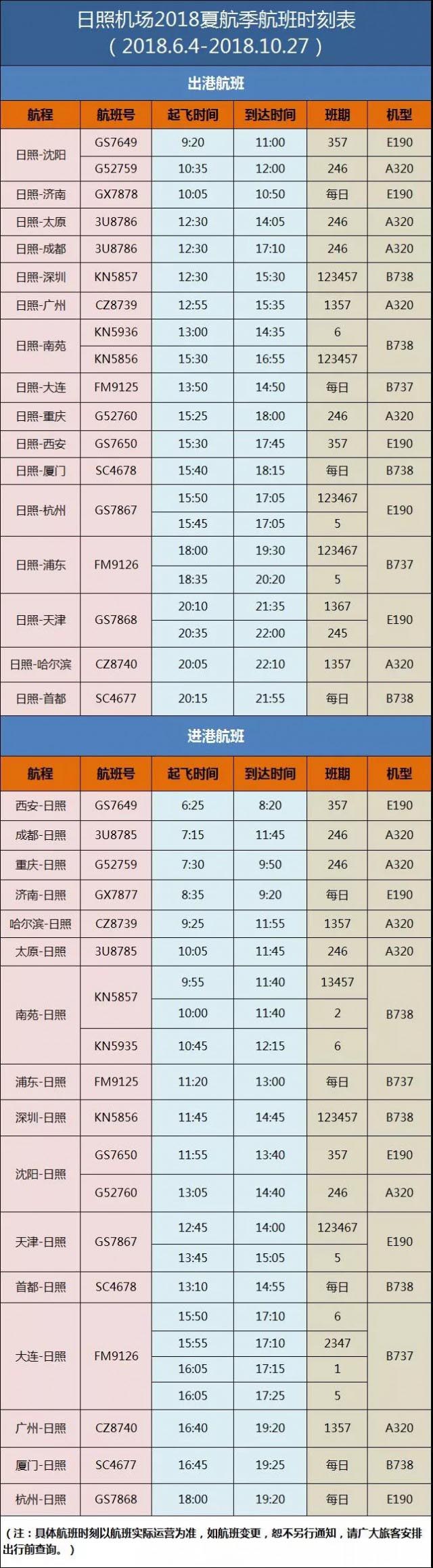 6月4日起执行!日照机场2018夏航季航班时刻表(2018年06月04日)