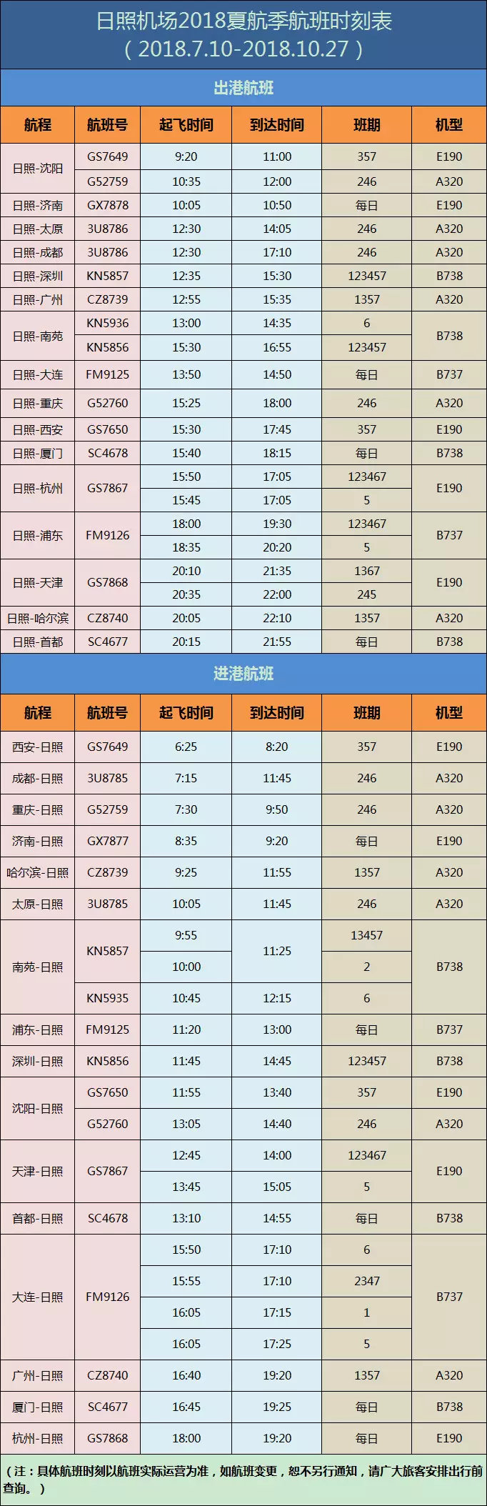 转需!日照机场发布航班时刻调整通知!(2018年07月09日)