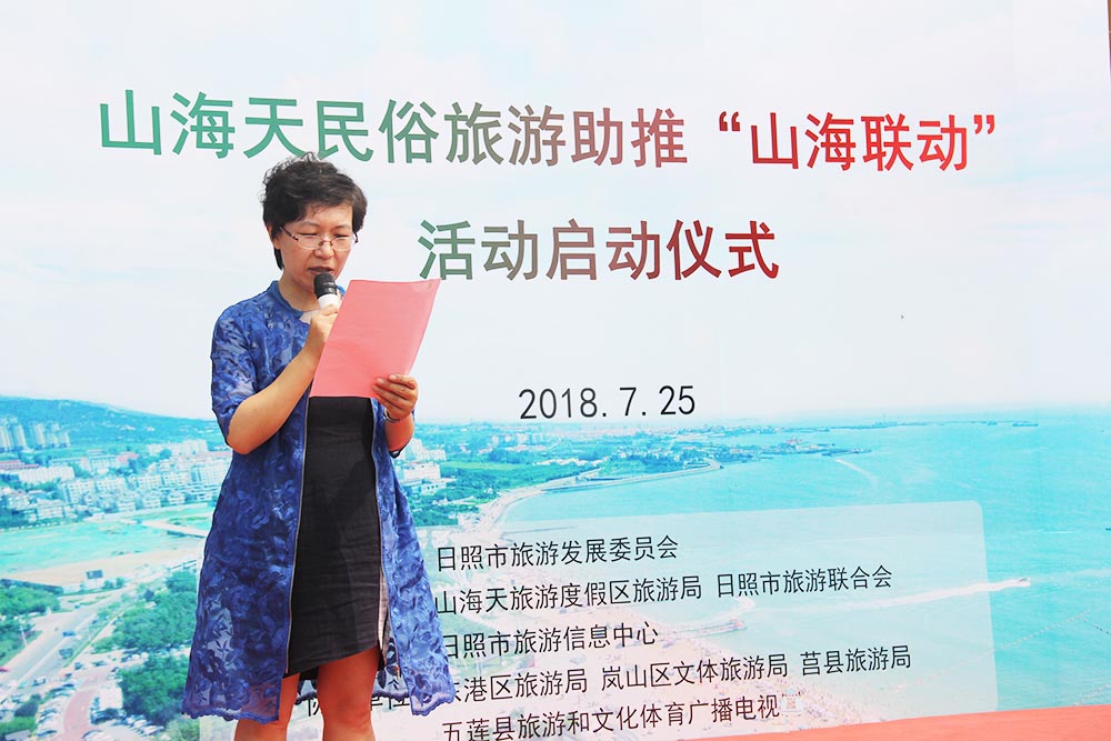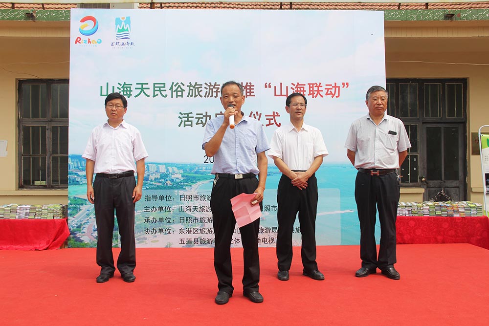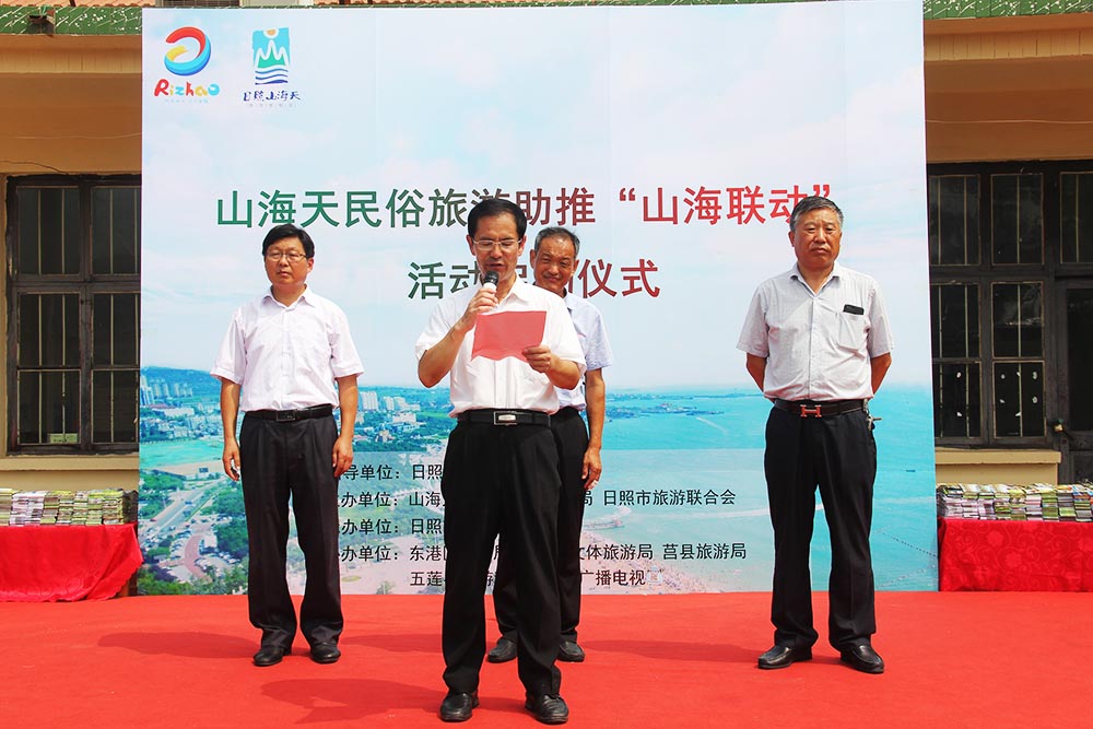 7月25日上午,山海天民俗旅游助推“山海联动”活动启动仪式在李家台举行。日照市旅游发展委员会副主任赵志超,山海天旅游度假区党工委委员、区食品药品监管局局长刘靖出席并讲话,山海天旅游度假区旅游局局长于冰、日照市旅游联合会秘书长秦绪言出席活动,山海天旅游度假区旅游局副局长李苇主持仪式,卧龙山街道沿海十个民俗村旅游主任、部分景区代表等参加了活动。