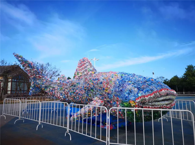 仪式上,还对日照海洋公园挑战“大世界基尼斯之最——最多塑料瓶组成的动物造型”活动进行了揭晓和认证。为倡议海洋环保,日照海洋公园向市民游客发起了废旧塑料瓶征集活动,通过上万名市民游客共同收集的40000多个废旧塑料瓶制作了鲸鲨形象的装置艺术作品,成功取得大世界基尼斯之最认证。