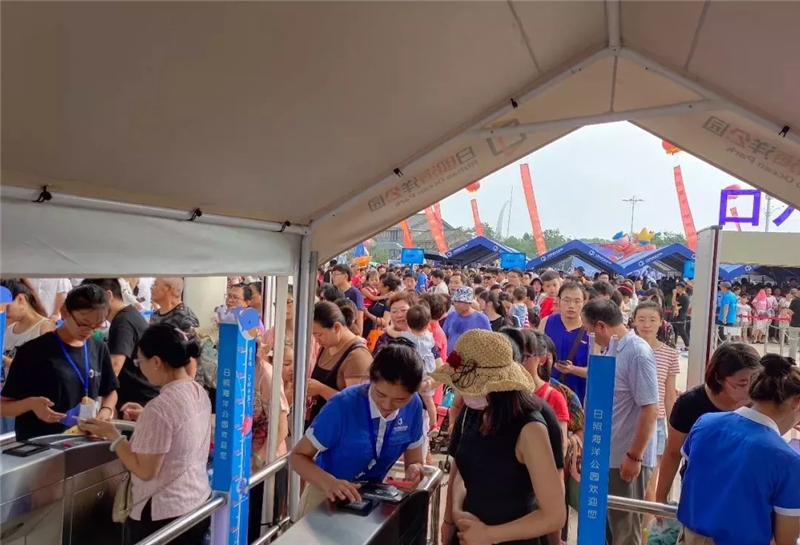 仪式结束后,日照海洋公园正式开园纳客,景区内20余个展区精彩开放,10大表演缤纷亮相,让游客大呼过瘾。海洋剧场海豚、海狮表演和俄罗斯水下芭蕾表演、美人鱼表演、飞禽表演、小丑互动秀、异域风情舞等精彩演出展现出别样风情。随着日照海洋公园精彩的海洋缤纷秀,大世界基尼斯之最——最多塑料瓶组成的动物造型“鲸鲨”展、“童画海洋·日照海洋公园杯”全国少儿网络绘画大赛优秀作品展也正式开展,日照海洋文化非遗、民俗展演同时启动,海洋元素充满着整个活动现场,为市民游客带来文化和视觉狂欢,标志着日照海洋狂欢季全面启动。