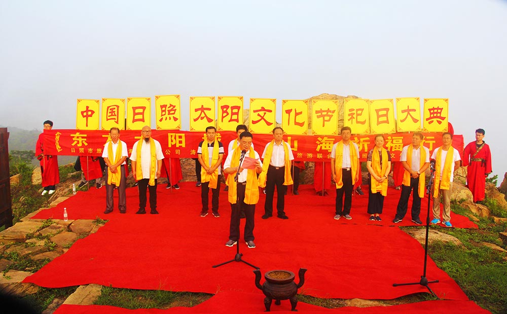 7月31日上午,由市旅发委、山东海洋文旅公司、涛雒镇人民政府、市旅游联合会、市太阳文化研究会联合主办的“东方太阳城·山海祈福行”2018中国·日照太阳文化节在日照东方太阳城举办。市旅发委主任王均波,市旅发委副主任赵志超,海洋文旅公司董事长赵东江、总经理古茂林及班子成员,涛雒镇党委书记厉华珍,涛雒镇党委副书记、镇长孙强,东港区旅游局局长郑丽丽,太阳文化旅游研究专家学者代表,涛雒镇部分村党支部书记、村民代表,市有关企业、金融机构负责同志、媒体及游客齐聚日照东方太阳城天台山和刘家湾赶海园,为太阳祈福祝寿。