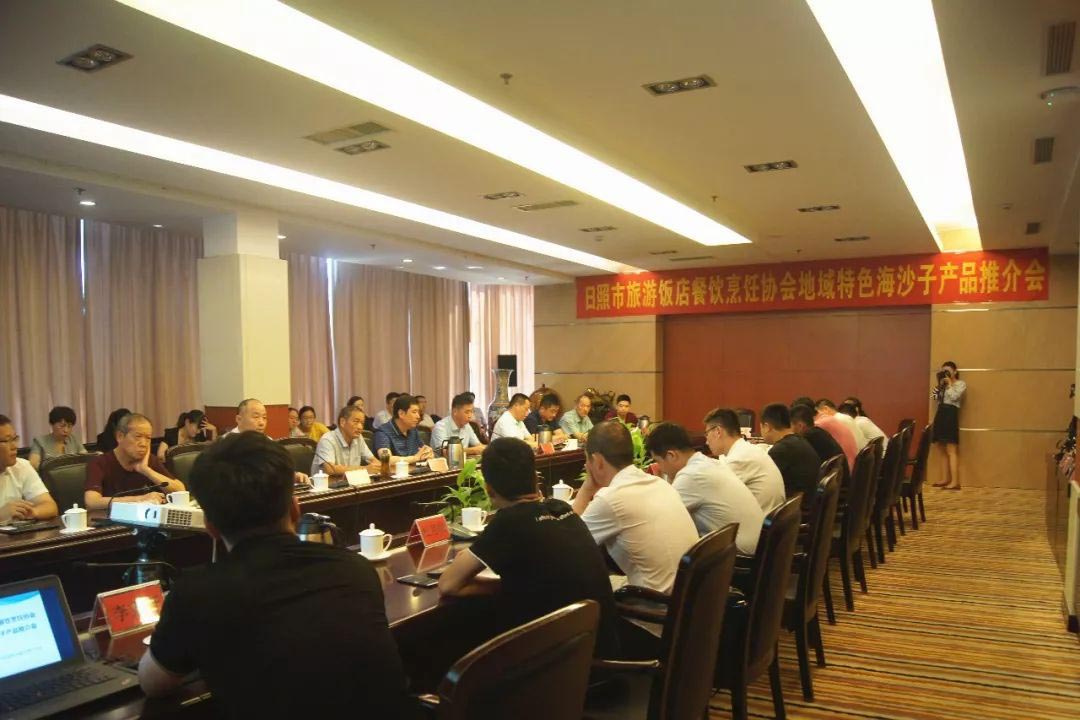 8月2日下午,日照市旅游饭店餐饮烹饪协会地域特色海沙子产品推介会在碧波大酒店举行,日照市旅游发展委员会副主任赵志超出席并讲话,日照市旅游饭店餐饮烹饪协会协会会长孙传胜出席会议,执行会长田胜亮发表讲话,来自日照市旅游饭店餐饮烹饪协会六十家会员单位、市内主流媒体记者等70余人参加了推介会。