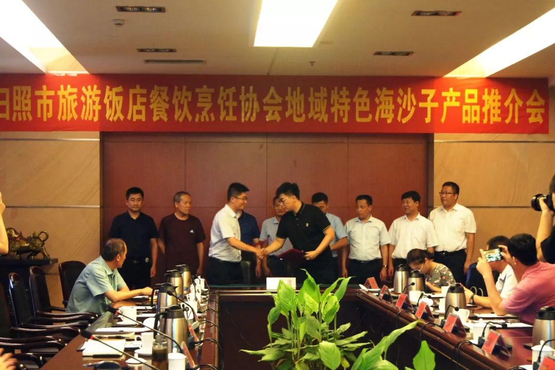 为深度挖掘具有我市地域特色的民间风味小吃、特色食材,让广大游客真正吃到具有日照味道的本帮菜,日照市旅游饭店餐饮烹饪协会特举办本次推介会,日照市岚山区淦盛海产品加工厂总经理李秉轩向与会人员介绍产品并发布订货政策;日照中豪餐饮集团、日照食为天餐饮集团、日照碧波大酒店、日照小江南大酒店等代表协会会员单位与日照市岚山区淦盛海产品加工厂分别签署合作协议。