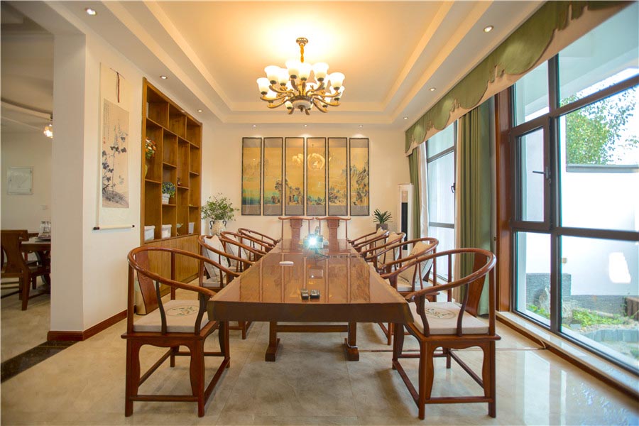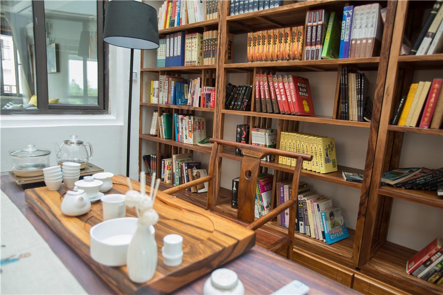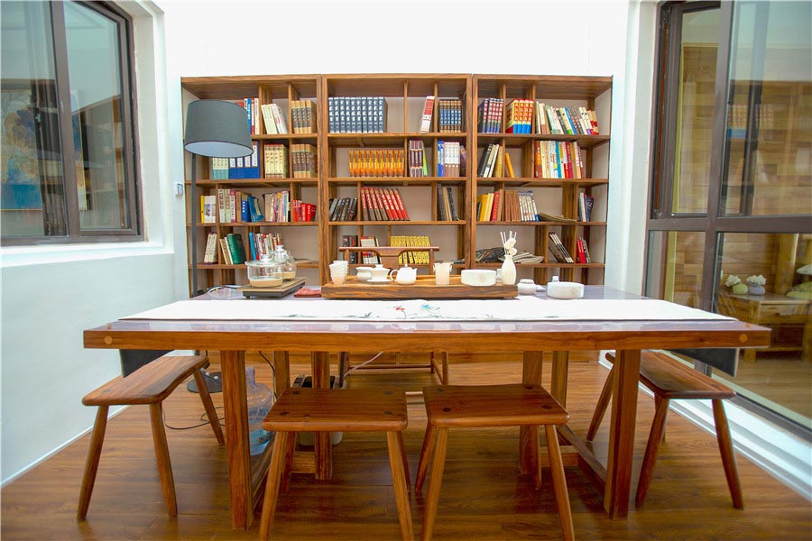 书房内藏有各类书籍,让您尽享读书快乐。茶室备有各类名茶,欢迎品尝。