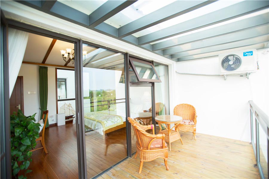 清雅的徽派建筑迎接宾客,高挑的阳台以更开阔的视野远眺海平线,最是院子里那一池活宝,让整栋民宿生动鲜活起来。