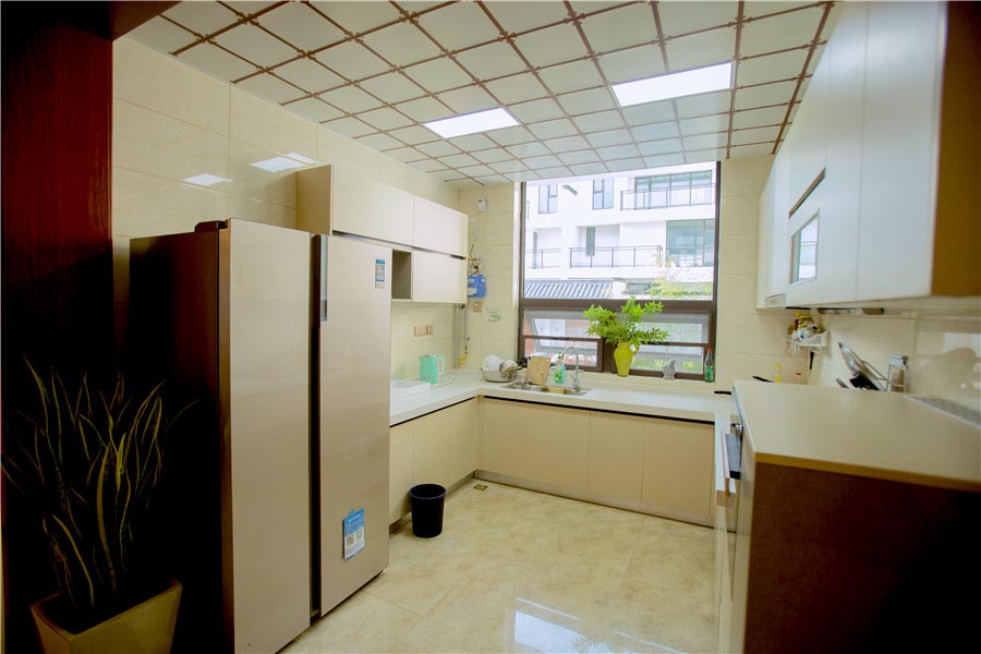 整体厨房、消毒柜、冰箱、烤箱等一应俱全,你可以自己享受烹饪的快乐。全别墅所有水质净化,包括您沐浴的水。