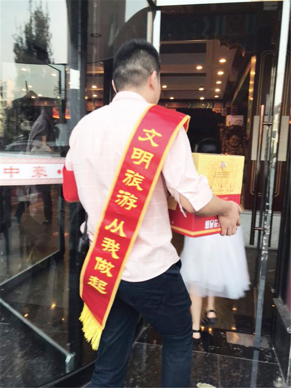 志愿者通过清洁地面卫生、规范公共秩序、热情解答游客疑问,用实际行动诠释志愿服务精神,做到把身份亮起来,把作用发挥起来,赢得了广大游客一致好评。