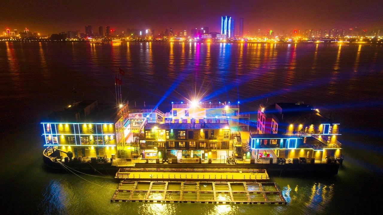 从张家台码头乘船5分钟抵达大船:万泽丰海上庄园—海上牧歌,是集“休闲观光、竞技垂钓、海洋采摘、食宿赏娱”功能于一体的海上休闲旅游体验平台。