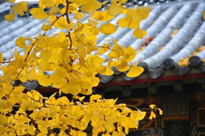 银杏就是为了秋天而生的, 完全展现了秋的热烈和绚烂, 你会为那一树树灿若黄金的奇特景观叹服, 漫步其中, 银杏叶洒满一身.....
