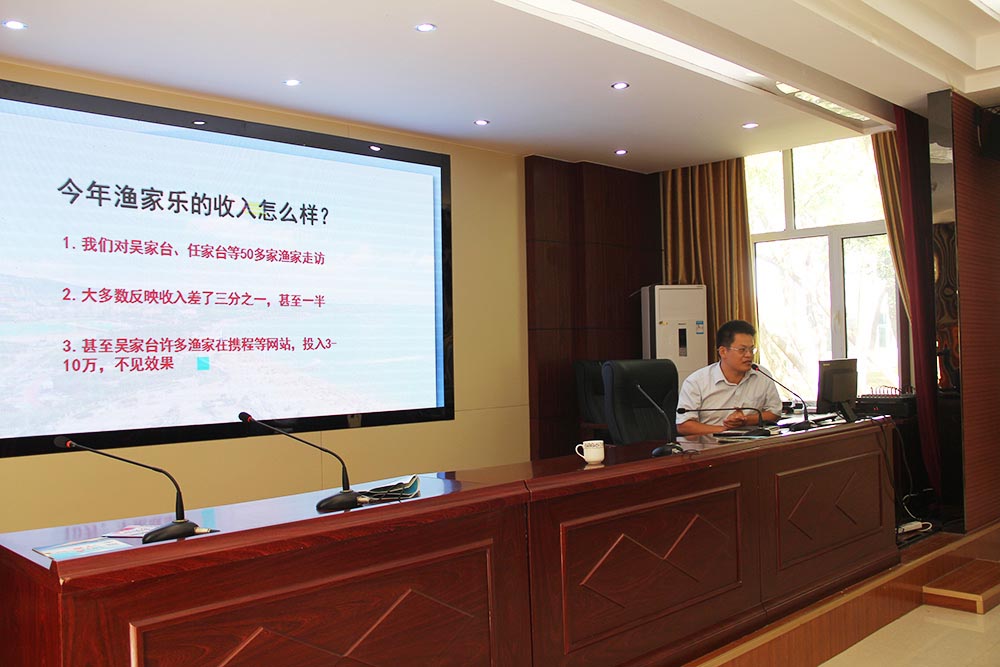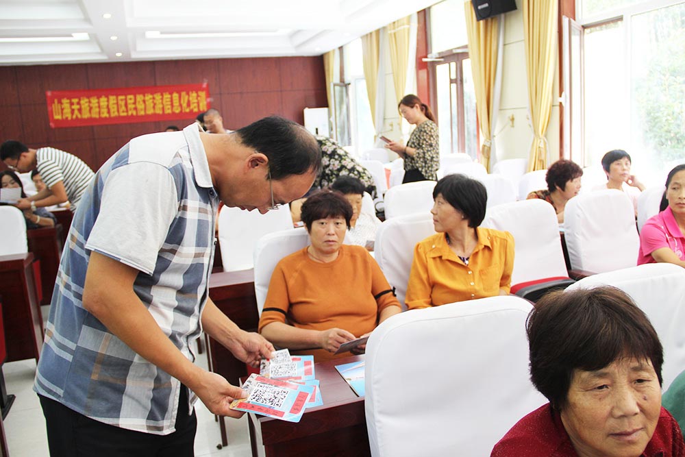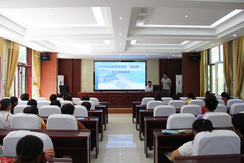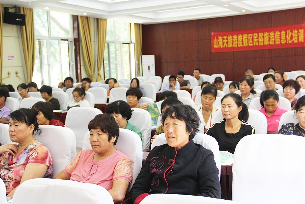 培训由山海天旅游度假区旅游局组织,旨在进一步丰富渔家乐内涵,利用信息化手段,抢抓机遇、开放思维,加快民俗旅游提档升级。日照市旅游信息中心主任田玉峰、电子商务工程师刘广明讲解如何运用“码上日照”、“码上山海天”自发查找、主动分享、扩大宣传、积极营销等全方位的实战应用培训。