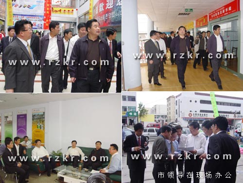10月10日下午,日照市市长于建成,在副市长侯成君、市长助理、市招商局局长王爱东等领导陪同下,来到海滨商贸中心韩国商品城视察投博会最后阶段准备工作。