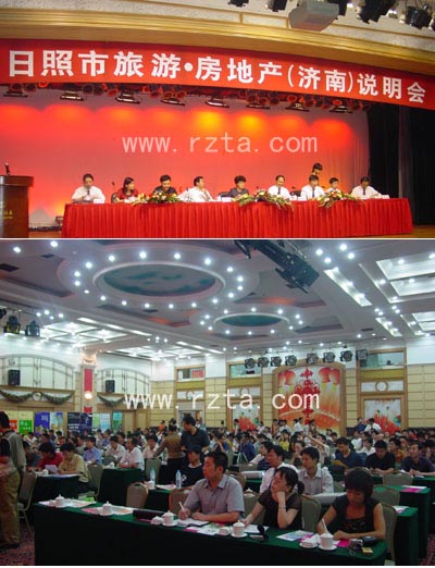 倾听大海的波涛,涉足金沙的浪漫,领略古朴的民风,观赏海上日出的雄姿。7月16日上午9时,日照市在泉城济南丽天大酒店隆重举行了日照旅游房地产说明会。日照市委副书记、市旅游经济工作委员会主任徐学武、副市长、市旅游经济工作委员会副主任张喜忱亲自带队,日照市旅游房地产方面的80多人宣传、促销队伍、进军济南,山东省旅游局副局长祝利民、济南市副市长赵文朝、济南市旅游局等单位的领导到会指导工作。参加会议的还有国有驻鲁媒体,山东、济南市主流媒体、济南市150家国有(国际)旅行社房地产公司总经理、日照市30家旅行社总经理、30家房地产公司总经理等约250人参加的盛会。本次活动在济南首次采用了网络媒体,实现了网上现场直播。